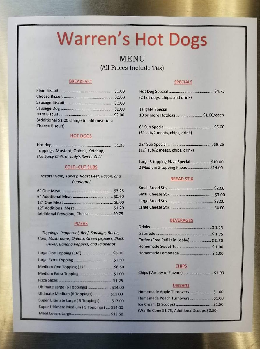 Warren’s Hotdogs offers a straightforward and welcoming menu that’s perfect for casual meals throughout the day. Whether you’re stopping by for a quick breakfast or a relaxed lunch, the menu focuses on comforting, familiar flavors served in a laid-back setting.